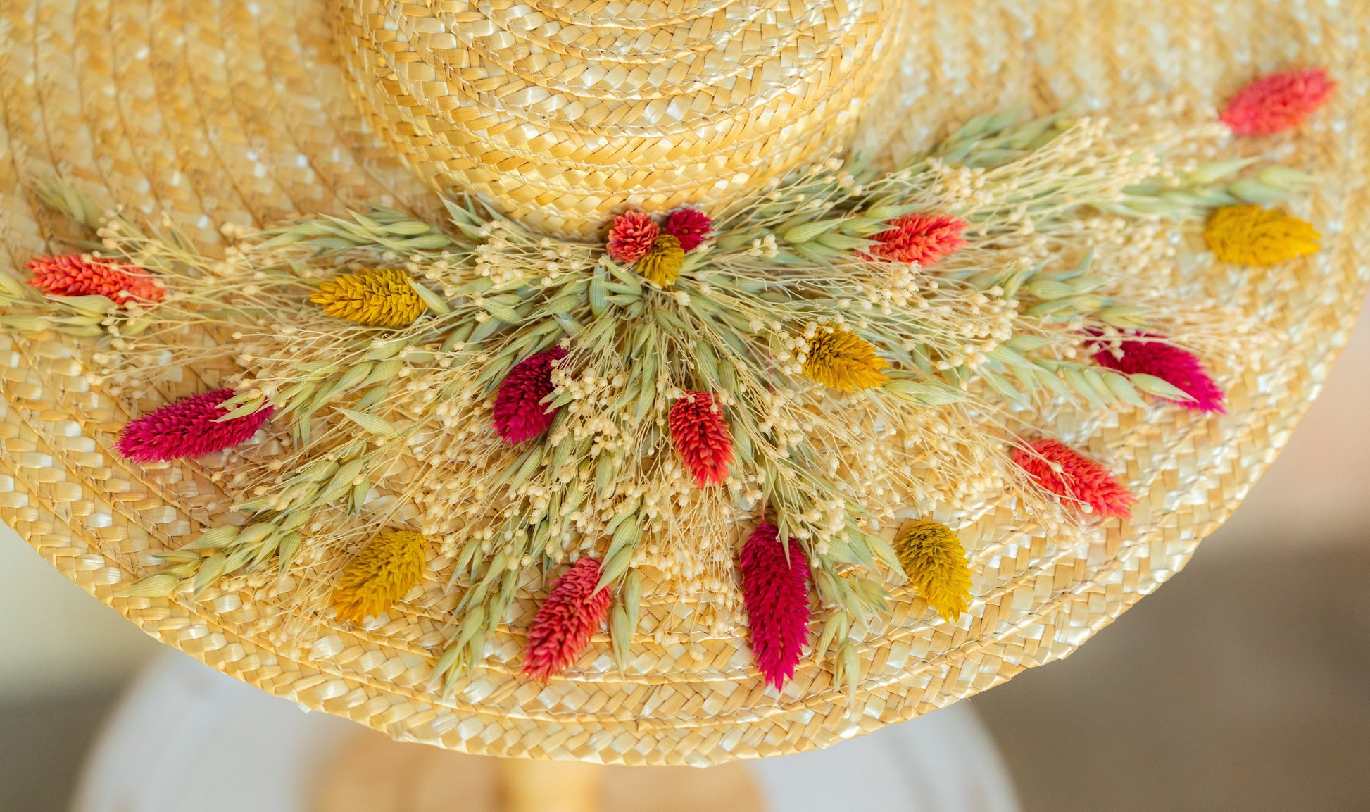 - Chaque création étant réalisée à partir de fleurs séchées et stabilisées, des variations légères de couleurs et de fleurs peuvent survenir, rendant chaque pièce unique.