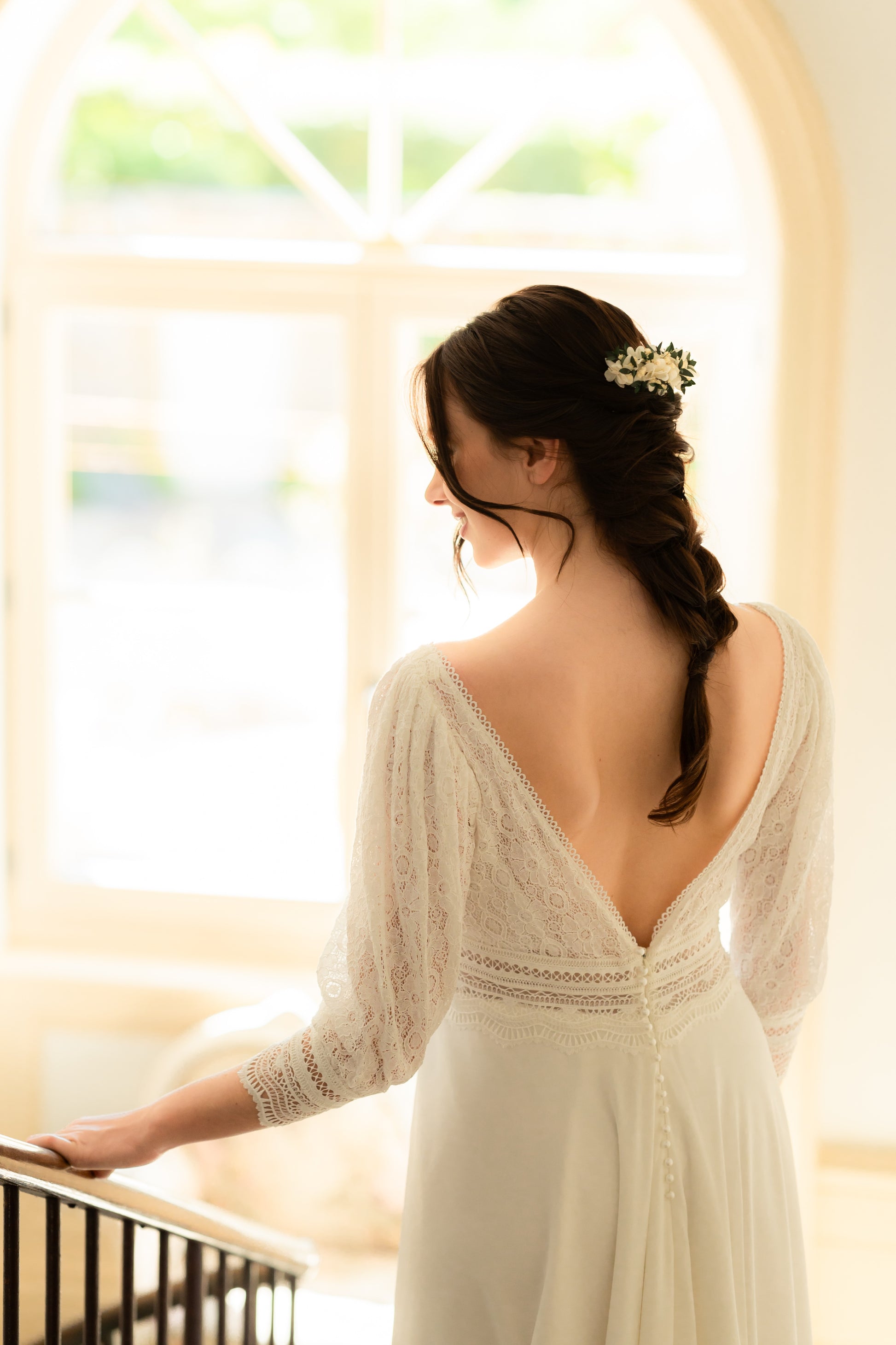 Il se glisse avec grâce dans une coiffure de mariée : chignon flou, tresse bohème ou demi-attache romantique.