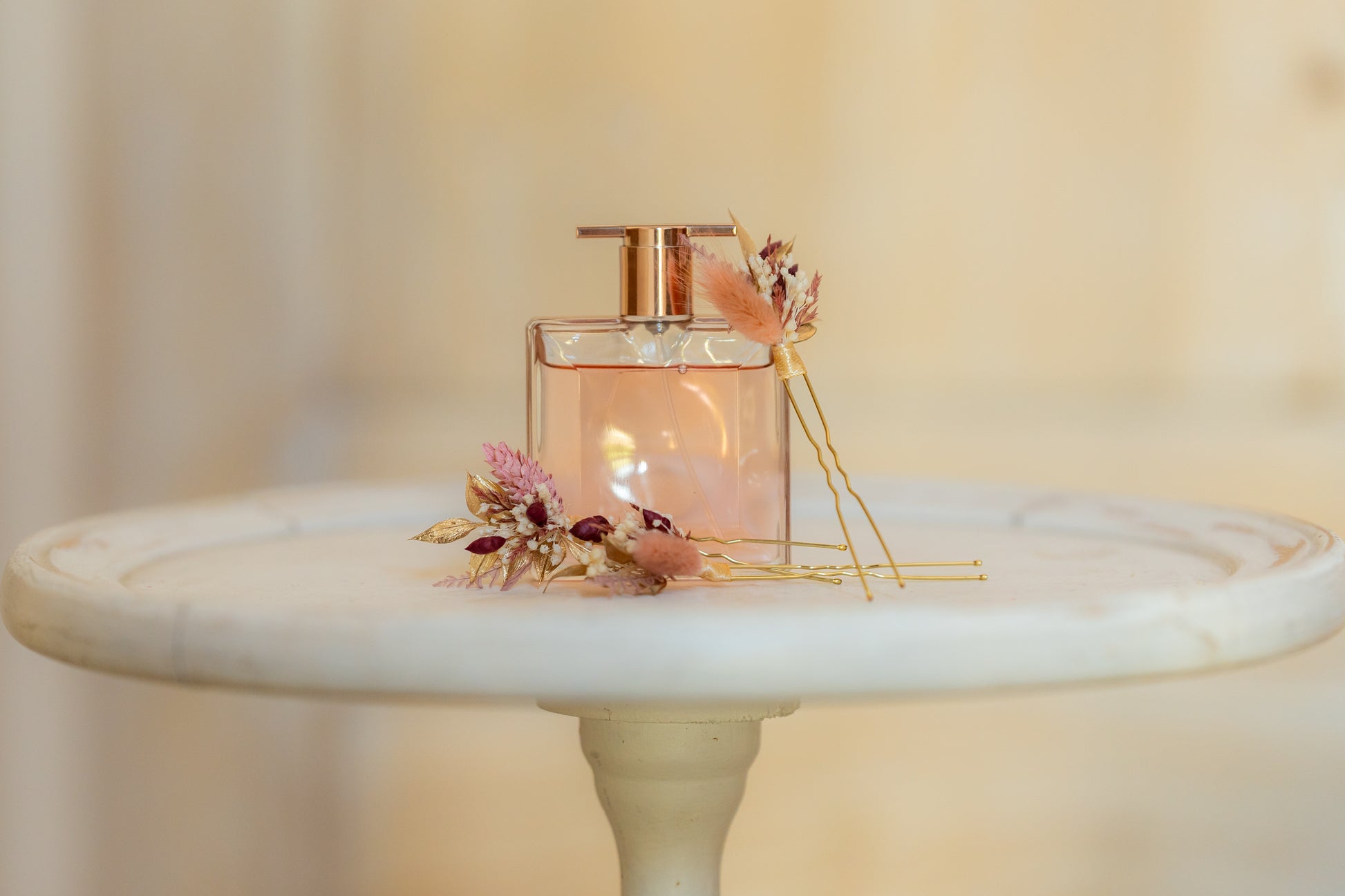 Évitez tout contact avec le parfum, la laque ou les cosmétiques, et manipulez votre création avec délicatesse pour en prolonger la beauté.