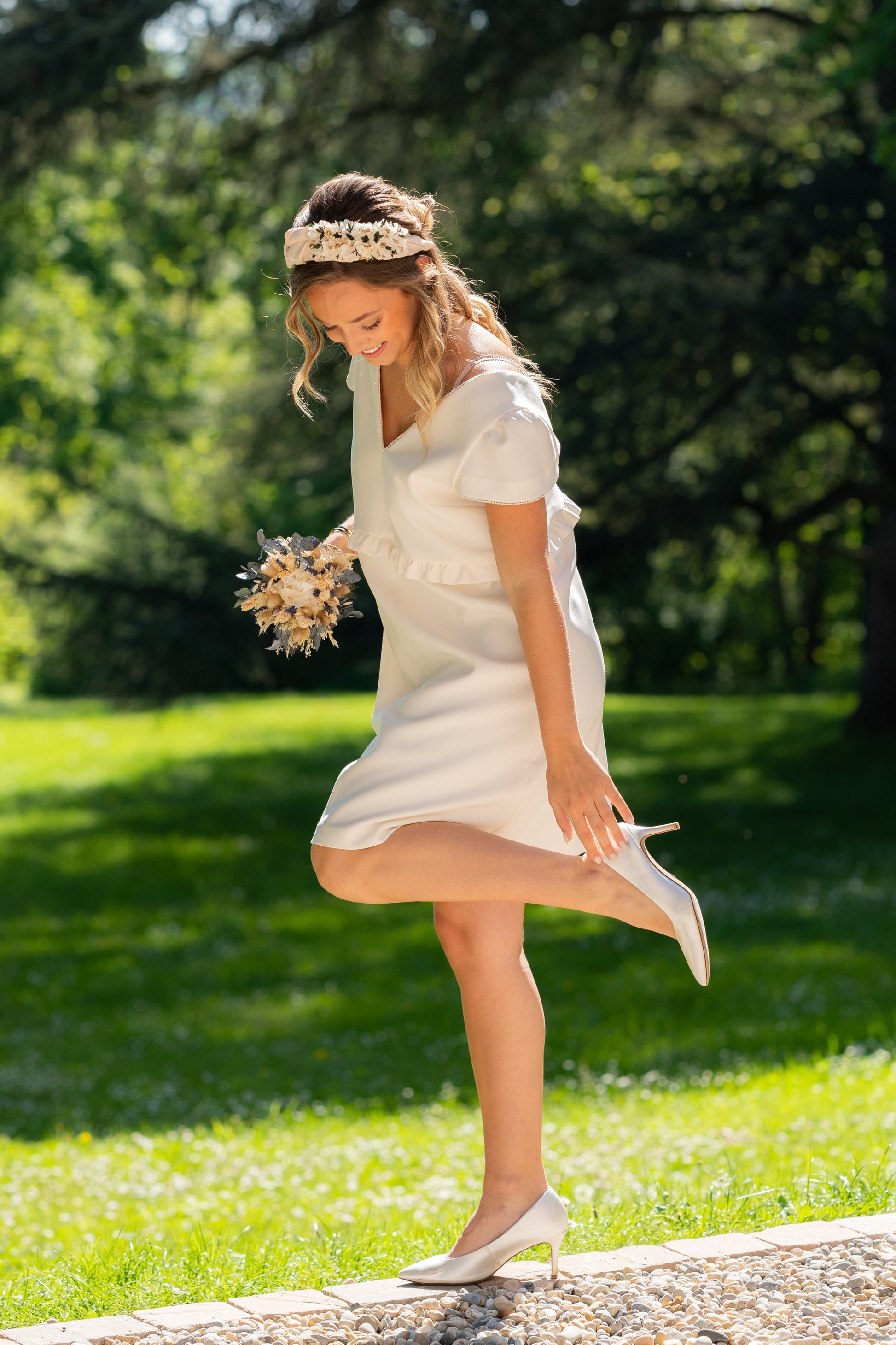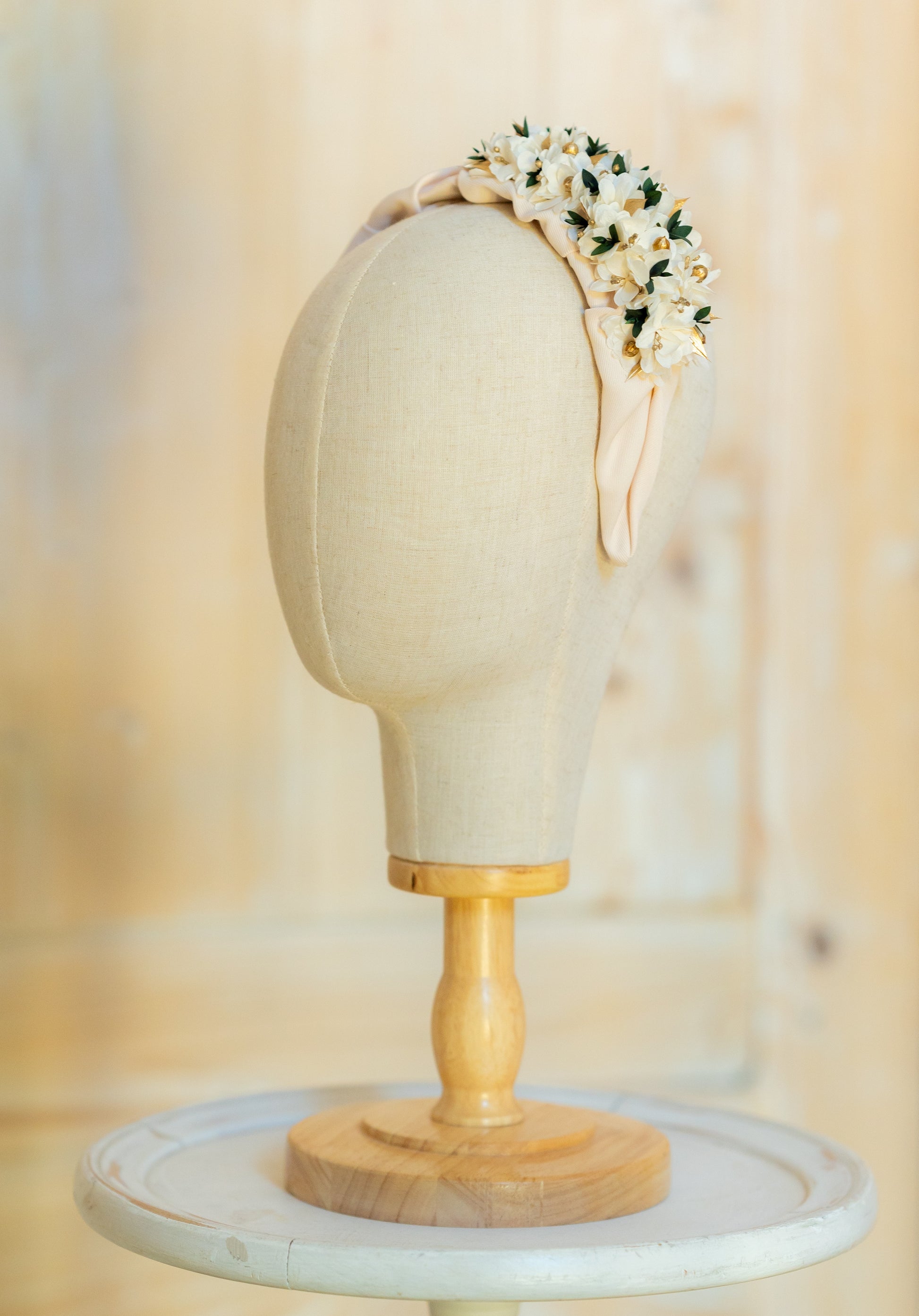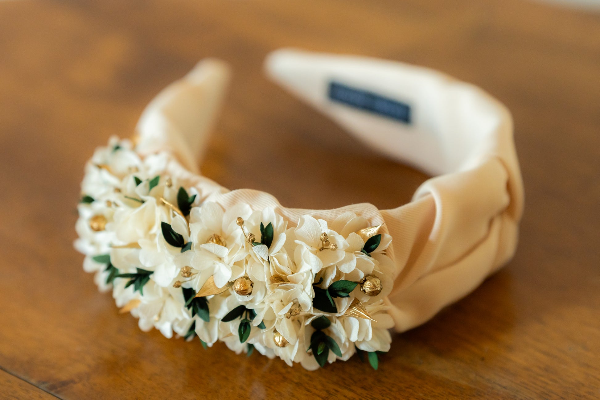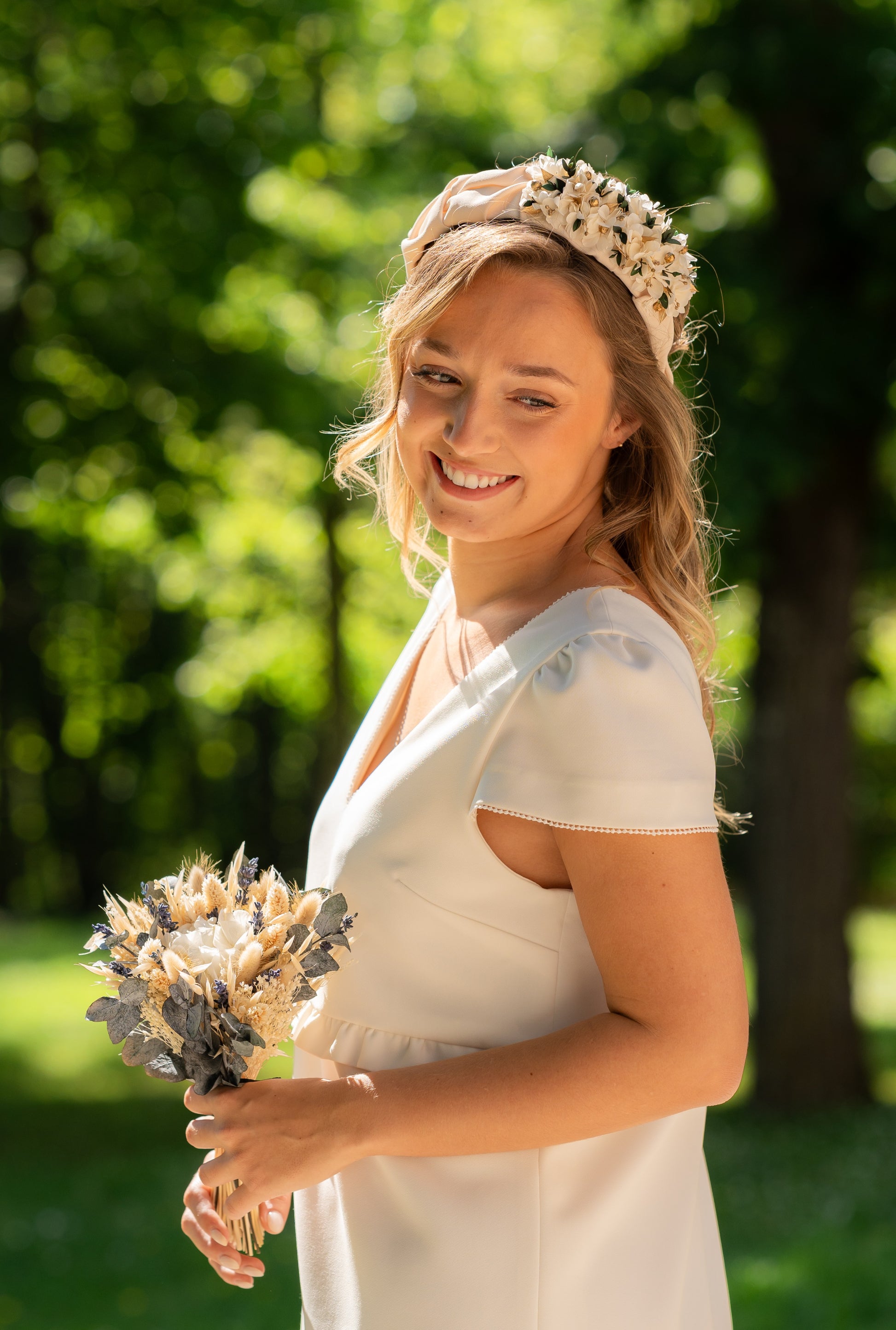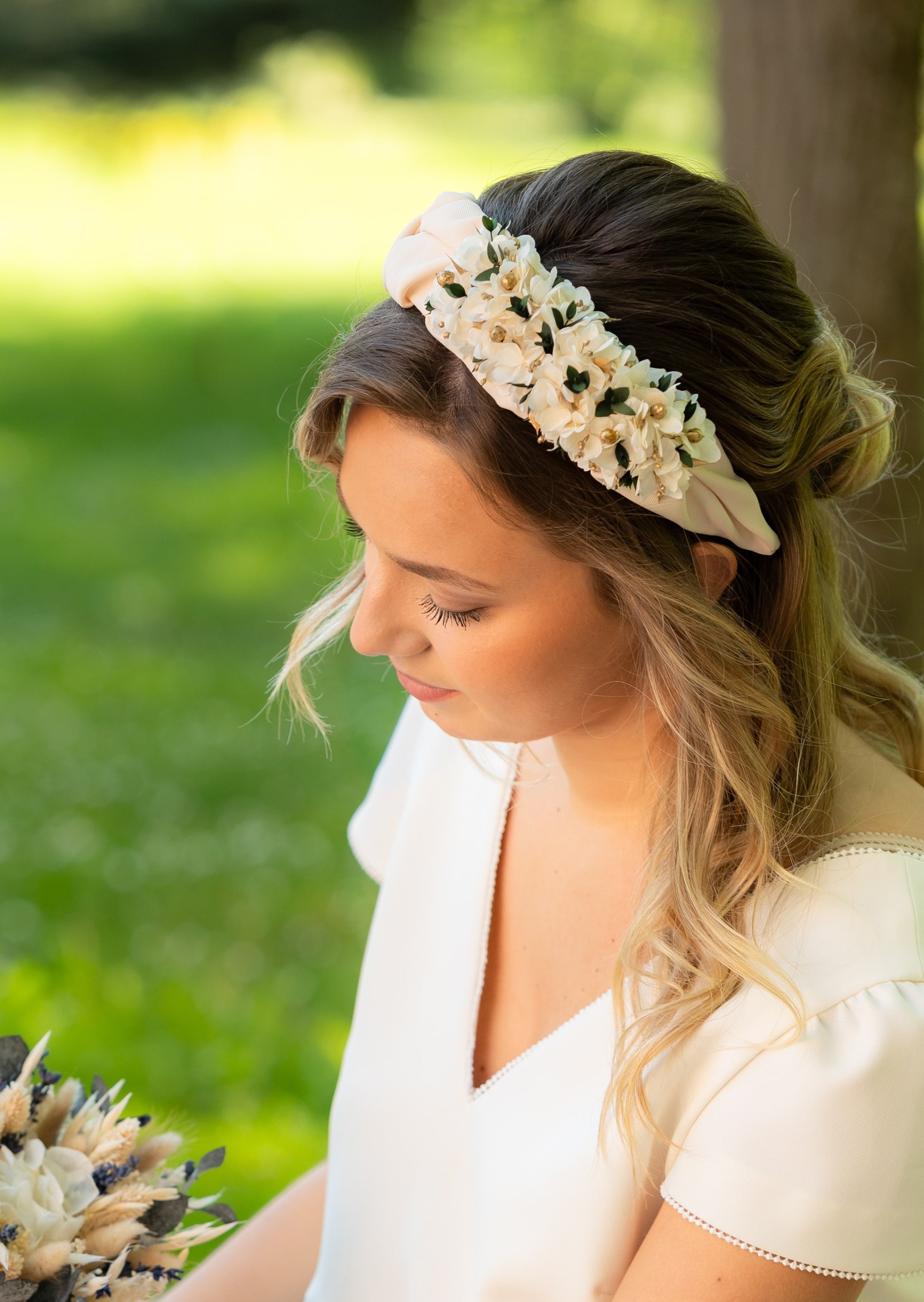Couronnez votre élégance avec ce serre-tête fleuri, l'accessoire raffiné qui sublime chaque coiffure de mariage.